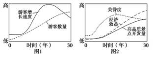 1、综合题 (14分)桂林是我国最具代表性的旅游城市之一。图1、图2反映了30年来桂林旅游业发展的基本状况。读图表资料回答问题。