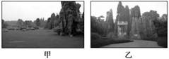 3、单选题 下图中,甲、乙两处景观所在地是我国著名的旅游胜地。读图回答问题。