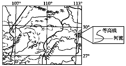 【小题1】本题要求学生熟练掌握中国主要城市、地形区的分布,特别是经纬度位置及相对位置;记清楚主要经纬线穿过的主要地形单元,能够根据图中的经纬度进行定位。由图可知A是四川盆地、D是云贵高原,故选项A正确。