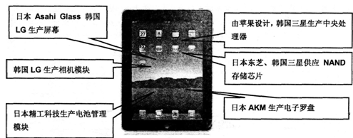 5、单选题  3月11日,日本本州岛附近海域发生9.O级强烈地震,并引发海啸灾难,物资严重缺乏,诸多企业停产。美国“苹果”公司是一家高科技信息技术公司,图表示“苹果”公司生产的平板电脑(ipad2)的主要零部件产地。据此回答下列各题。