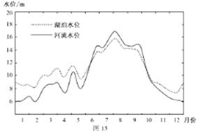 图15示意洪涝年份鄱阳湖与长江相连河段的水位变化。读图回答问题。