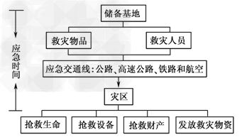 5、单选题 灾前准备、灾中应急和灾后恢复是自然灾害救助过程中的三个核心环节。灾前准备涉及两个方面:一是救灾物资的种类和数量;二是救灾物资的储备地点。灾中应急行动见下图。据此回答1~2题。
