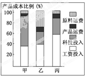3、单选题 读“工业部门产品成本比例示意图”,回答问题。