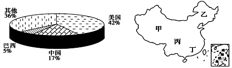 3、单选题 下图为“某种农作物三国产量占全球的比重图”,完成下列各题。