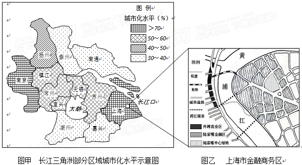 (1)概括图甲所示地区城市化水平的地区差异。(2分)