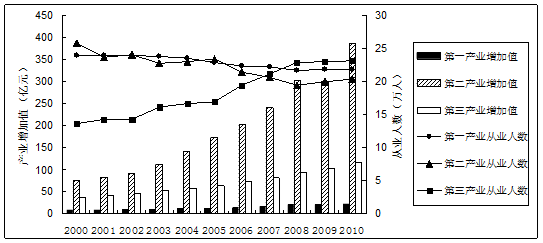 材料三:攀枝花市2000-2010年三大产业统计资料(数据来源:攀枝花市统计局)。
