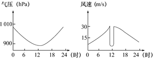 5、单选题 图是“我国某天气系统在某地过境时的气压与风速随时间的变化规律示意图”,该天气现象有可能是 ( )