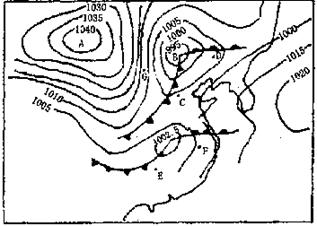 (2)C、E?冷锋?阴雨天气,并伴有较大的风?气温降低,气压升高,天气晴朗