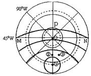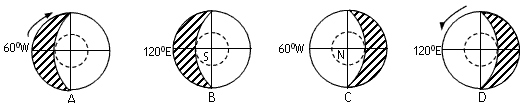 2、此时,与图所对应的太阳光照图是(阴影部分表示黑夜)