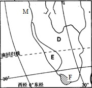1.E为纳米布沙漠,它沿非洲西南大西洋海岸延伸2100千米,该沙漠最宽处达160千米,而最狭处只有10千米,其沿海岸线延伸的原因是2.F自然带在此处分布的最高纬度低于35°,其主要的影响因素是