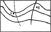 1.图示等值线数值由南向北逐渐减小,故若为等高线则虚线处等值线“凸高为低”为山谷;实线处等值线“凸低为高”为山脊。A正确。冬季积雪主要覆盖有山谷地带,B错误。图示A地等高线较密集,坡度较大,故梯田适宜建设于B地,C错误。A处山谷中不能看到B处山脊的风景,D错误。