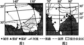 材料一:图1和图2分别为澳大利亚和印度略图。