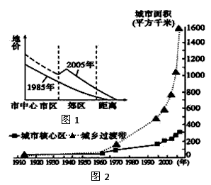 1、图1中郊区地价变化的原因最有可能是