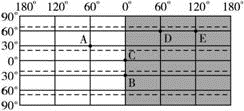 5、综合题 下图为“世界经纬网示意图”,读图完成下列问题。