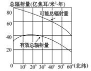 3、单选题 该图为太阳辐射量随纬度分布示意图。有效总辐射量是考虑了受大气削弱之后到达地面的太阳辐射。完成问题。