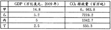 1、单选题 CO2排放量与产业结构、能源消耗量、能源消费构成、能源利用率等因素相关。法国是清洁能源利用率最高的国家之一,其74%的电力供应依赖核电。下表为中、日、美、法四国2009年燃烧化石燃料排放CO2的主要指标,阅读回答问题。