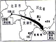 3、单选题 2005年2月18日,国家发改委批复首钢分阶段压缩北京地区钢铁生产能力并最终把涉钢系统全部迁出北京的方案。读该图,完成问题。