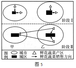 小题3:阶段Ⅱ甲地鲜花和蔬菜全部从乙地输入,其根本原因可能是: