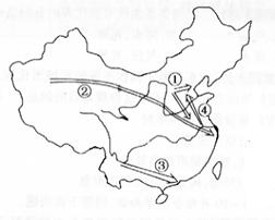 1、单选题 读“我国正在实施的资源跨地区调配示意图”,完成问题。