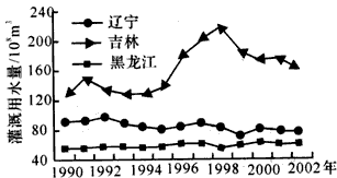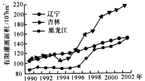 图1:1990~2002年东北三省有效灌溉面积变化图