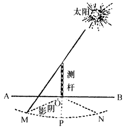 5、综合题  我国某地区中学的地理研究小组对学校所在地区进行了经线和纬度测定实验。下图是某天实验的示意图(MN弧是测杆阴影端的连线)。分析并回答下列问题。