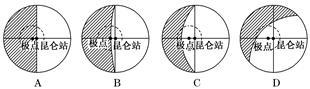 小题1:当天昆仑站正午时,若从昆仑站上空俯视地球,观察到的昼夜分布情况与下图大致相符的是? (  )