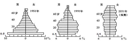 2、单选题 下图是“台湾省不同年份人口金字塔图”,读图完成1-2题。