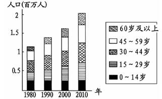 1、单选题 读我国某城市人口数量变化图,回答下列各题。