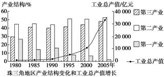 小题1:下列有关珠江三角洲地区产业结构从1980年到2005年的变化,正确的是 ( )