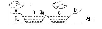 4、单选题 图3 位于同一纬度的A、B、C、D四地中,昼夜温差最小的是