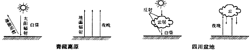 本题考查大气的受热过程和大气的保温作用。大气对太阳辐射的吸收:具有选择性(大气中的臭氧和氧原子主要吸收紫外线;水汽和二氧化碳主要吸收红外线),而对太阳辐射中能量最强的可见光吸收很少,太阳辐射不是大气的主要直接热源。地面辐射:为长波辐射,除少部分透过大气返回宇宙空间外,绝大部分为大气中的水汽和二氧化碳吸收,因此,地面是低层大气主要的直接热源。大气逆辐射:大气在增温的同时,也向外放出红外辐射,也是长波辐射,其大部分辐射向地面,称大气逆辐射,补充地面热量的损失,对地面起到了保温作用。青藏高原地势高,空气稀薄,白天太阳辐射较强,夜晚大气逆辐射较弱。所以本题选择C选项。