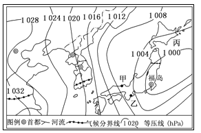 4、单选题 读“2012年11月20日10时(北京时间)东亚部分地区等压线分布示意图”(下图),回答下列各题。