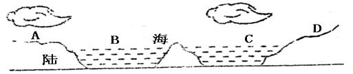 1、单选题 下图中A、B、C、D四地位于同一纬度,其昼夜温差最小的是?(?)