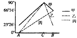 (2)下图中甲、乙、丙三条线表示从A到B各地当日正午太阳高度的变化规律其中正确的是