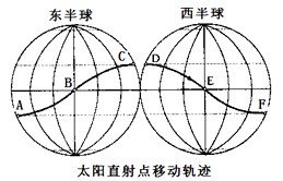 1、综合题 读“太阳直射点移动轨迹”图,分析回答下列问题。