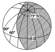 小题2:图示为北半球俯视图,北极圈内为极昼现象,故该日的日期最接近6月22日。