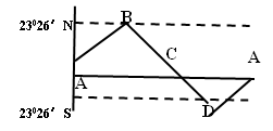 1、单选题  当太阳直射点位于右图中D点这一天时