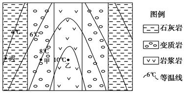 【小题2】石灰岩地下有可能会发现溶洞,A错。乙地河流地势上应从高出流向地处,根据地势高气温低的原理,河流应从气温低的地方流向气温高的地方,不是自南向北流B错。海拔相差100米气温相差0.6°,乙丙温差大于6,海拔大于1000米。C错。利用热力环流原理都可以划出风是从丙地吹响乙地的。D正确。