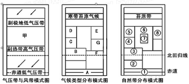 (3)上述模式图之间的关系体现了地理环境的 ,最右图中自然带①②③④⑤的递变体现了地理环境 的地域分异规律;自然带⑤⑥⑦的地域分异,主要受_________条件控制。