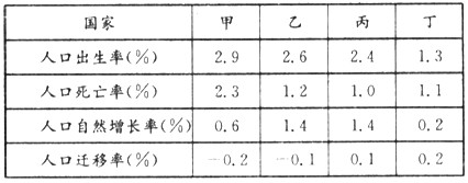 D.未来将面临劳动短缺、社会保障负担加重等问题的国家是丁