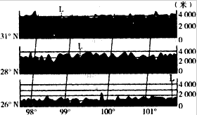2、单选题 下图是我田某区域按不同纬度所作的地形剖面图,读图完成1—2题。