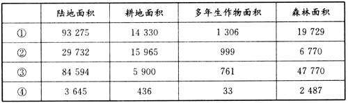 1、单选题 下表是中国、日本、印度、巴西四国的2005年土地利用的部分资料统计表,据此回答1~2题。