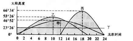 5、单选题 图表示不同纬度四地在北半球夏至日的太阳高度日变化曲线。读图完成问题。