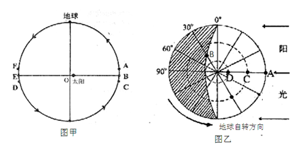 (1)图甲中,地球公转速度最慢的点是?,时间是每年的?。