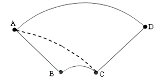 5、单选题 下图是北半球局部图,AD、BC为纬线,且BC弧度为90°,AC为晨昏线且与纬线相切于C点,图示区域恰好为7日。读图回答下列各题。