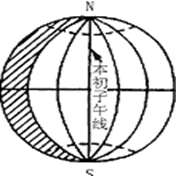 4、填空题 读下图,阴影部分表示黑夜,此时有两条经线两侧日期不同,这两条经线是