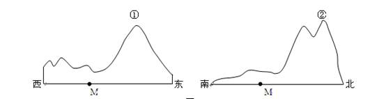 2、单选题 图为过M点(128°E,48°N)沿经线和纬线作相同长度的地形剖面示意图,读图回答问题。