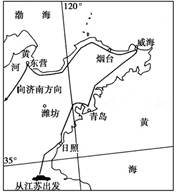 3、综合题 (12分)“母爱圣地——乳山,人间仙境——蓬莱,走遍四海,还是威海,……好客山东欢迎您!”李老师暑假在家被央视播出的旅游广告所感动。于是他决定对山东进行自驾车考察旅游,其考察线路如图所示。读图回答下列问题。