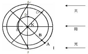 (1)图中EOF为晨昏线,用斜线阴影在图中标出黑夜部分;其中EO为?线,OF为??线。