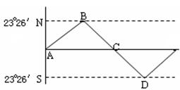 1、单选题 读“太阳直射点回归变化示意图”,回答下列各题。